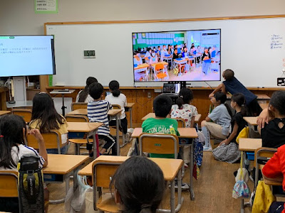 夏休みに入って最初の月曜日、会見小でイングリッシュ デイ キャンプが開催されました。参加児童は6名でしたが、子どもたちは、南部町の2名のALTといっしょに、英語で歌ったりゲームをしたりして楽しい時間を過ごしました。